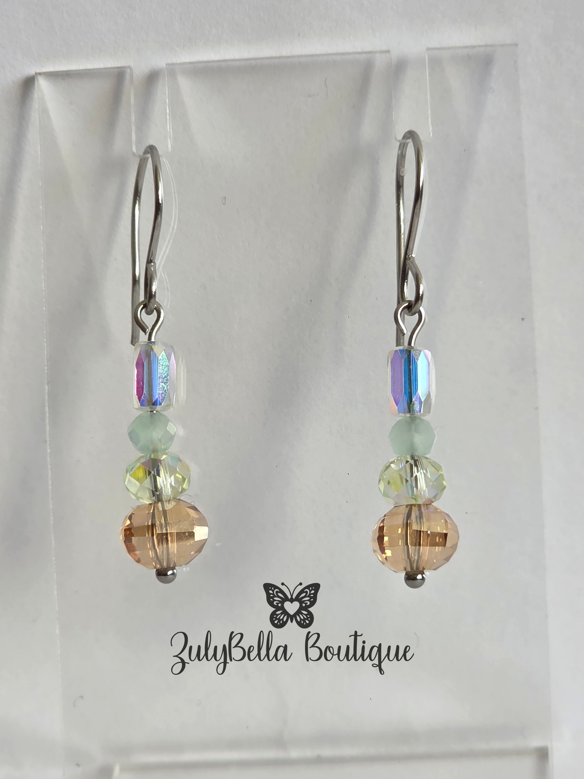 Made with glass Beads and handmade stainless steel hook wires 18 guage