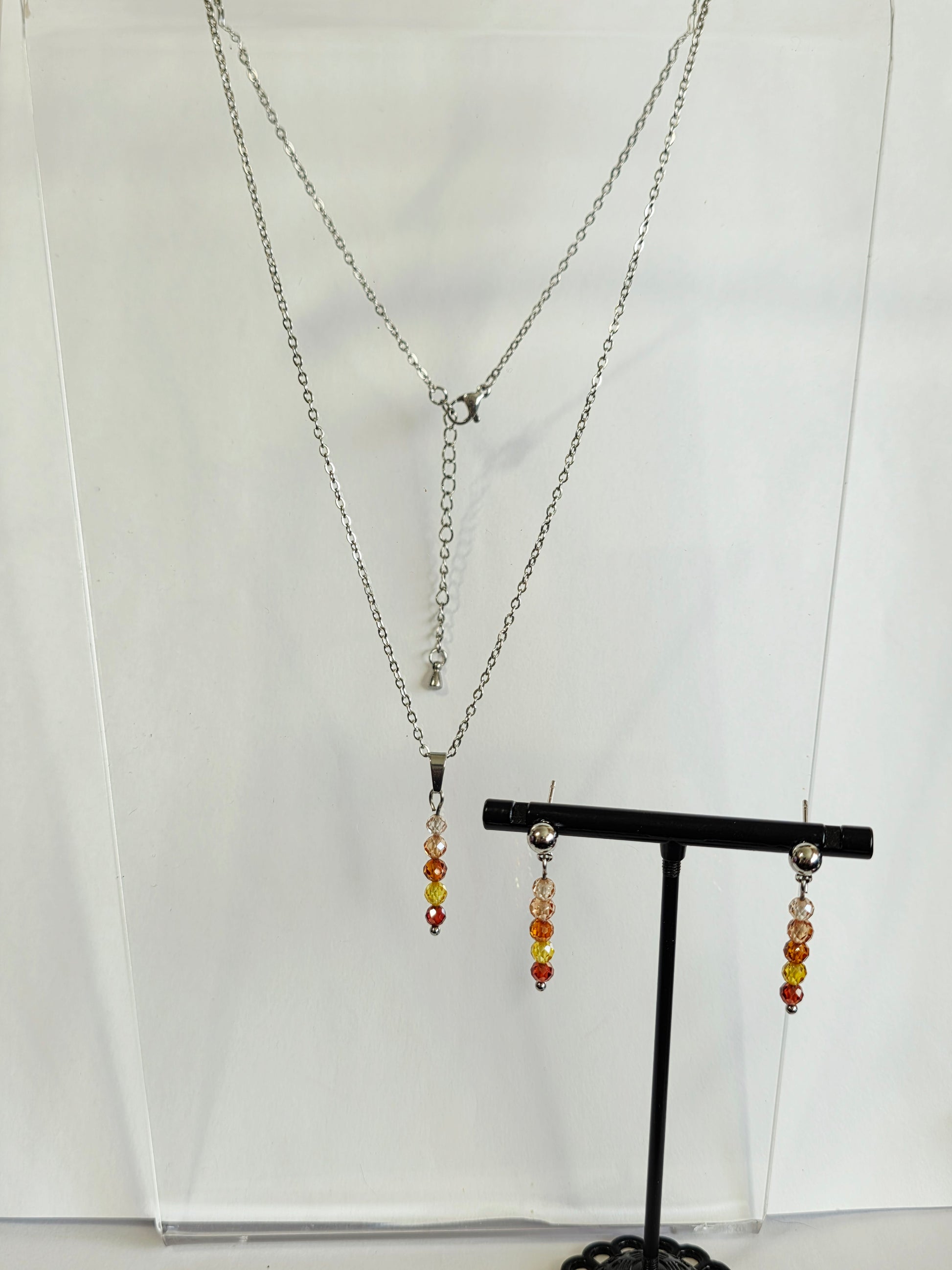 Zircon Dainty Stainless Steel Chain Necklace and Earring Jewelry Set -